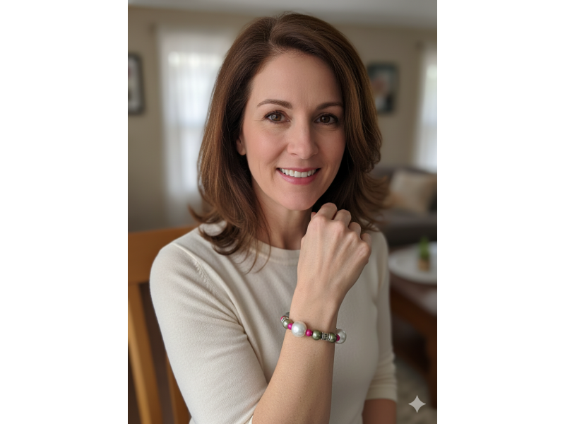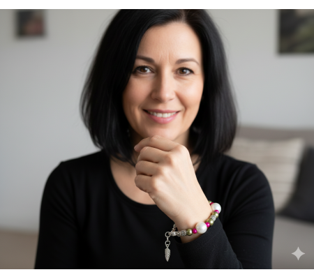 PULSERA PLATEADA DE PERLAS DE CRISTAL VERDE Y FUCSIA